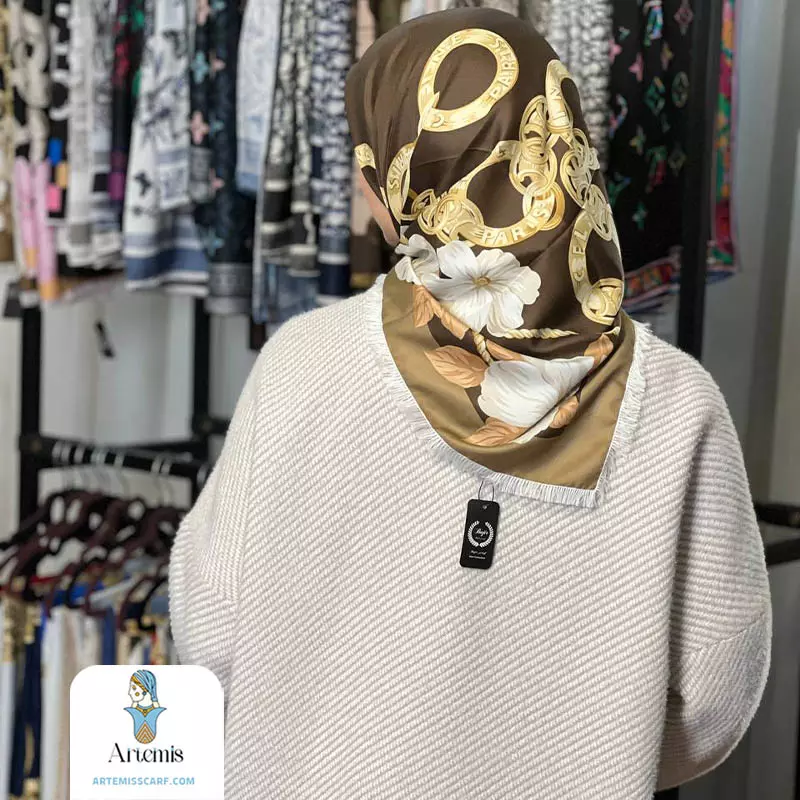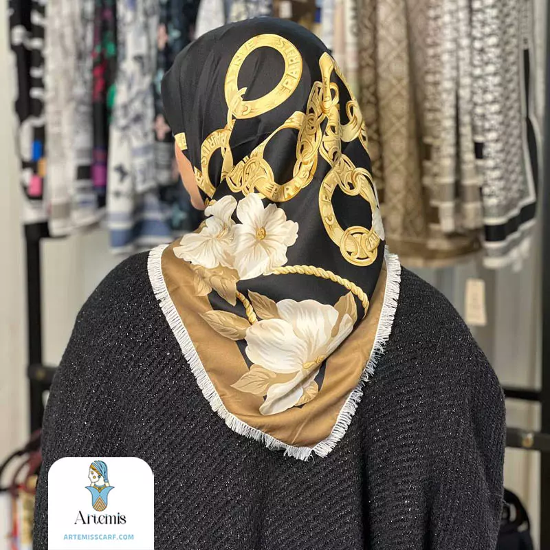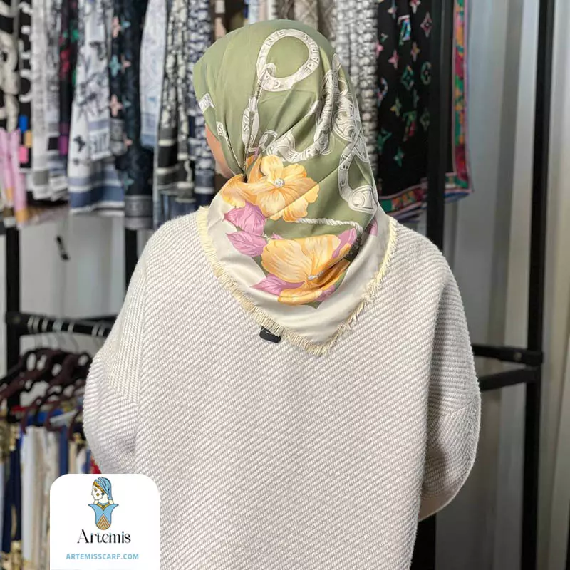 روسری ابریشم ژاکارد حاشیه سوزنی