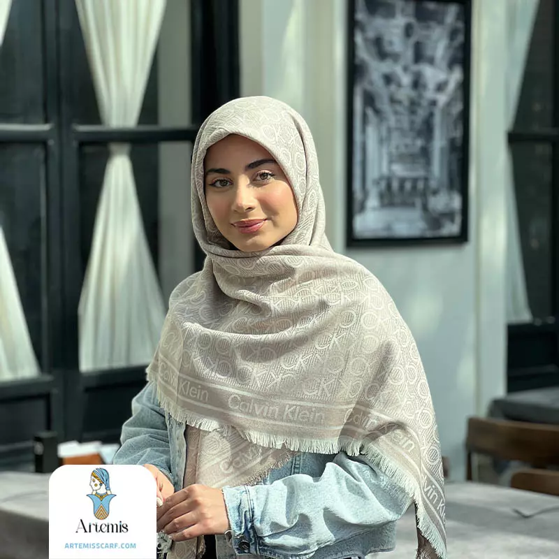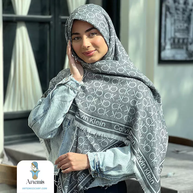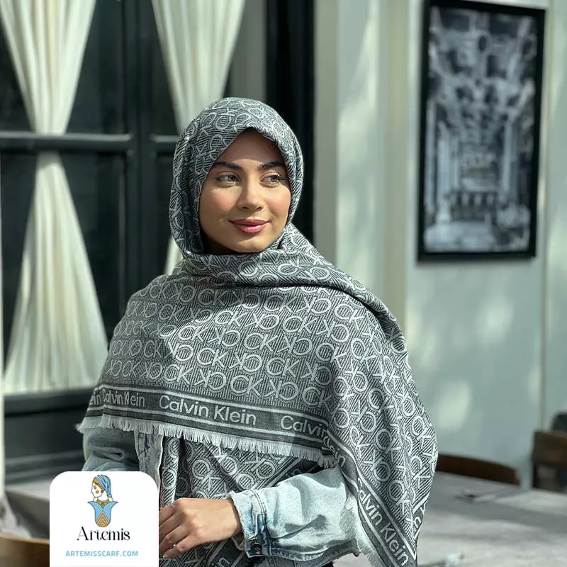روسری کشمیر قواره بزرگ طرح CK – تلفیقی از لطافت، شیک‌پوشی و استایل برند