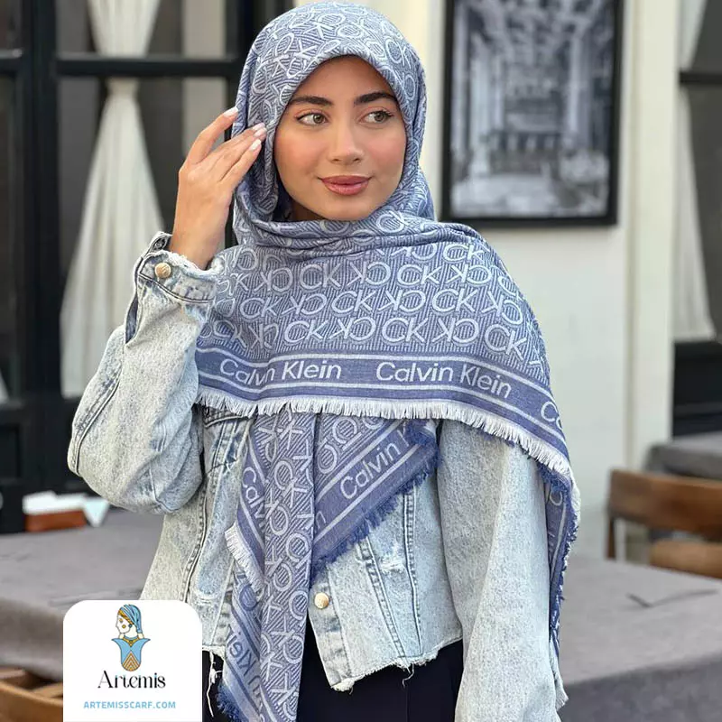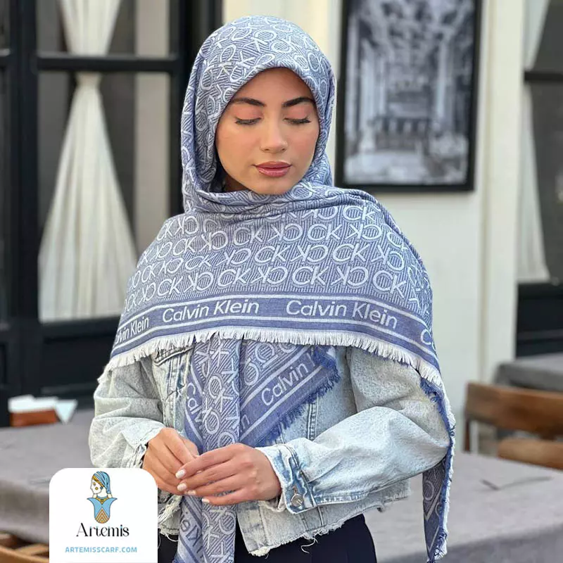 این مدل با طرح لوگوی CK (Calvin Klein) طراحی شده و جلوه‌ای خاص و امروزی به استایل شما می‌دهد. ترکیب حروف و طراحی منظم برند در زمینه پارچه، جلوه‌ای لوکس و در عین حال مینیمال ایجاد کرده که به‌راحتی با انواع لباس‌های کلاسیک یا اسپرت ست می‌شود. حاشیه‌ی ریش‌دار روسری نیز جلوه‌ای خاص و مد روز به آن بخشیده است.