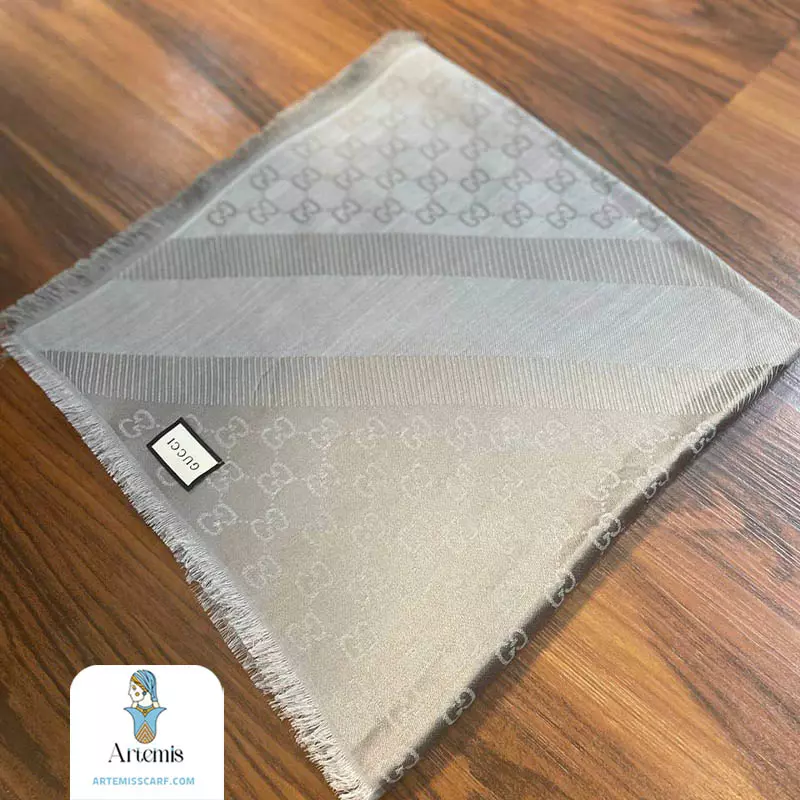 روسری طرح گوچی، بافتی یکدست و درخشان دارد و همین بافت خاص، در کنار رنگهای ملایم و هماهنگ، جلوهای اصیل و لوکس به آن داده است.