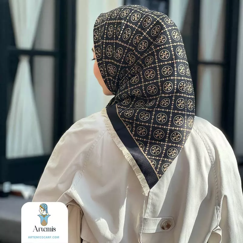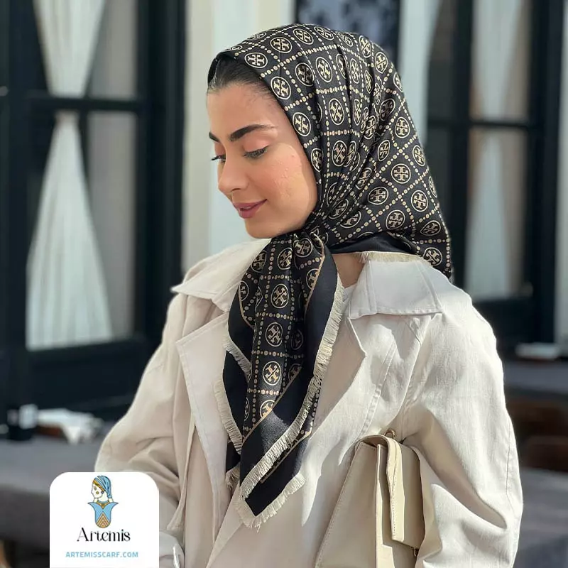 در این روسری نیز طراحی به شکلی کاملاً هماهنگ، مرتب و کلاسیک اجرا شده تا: