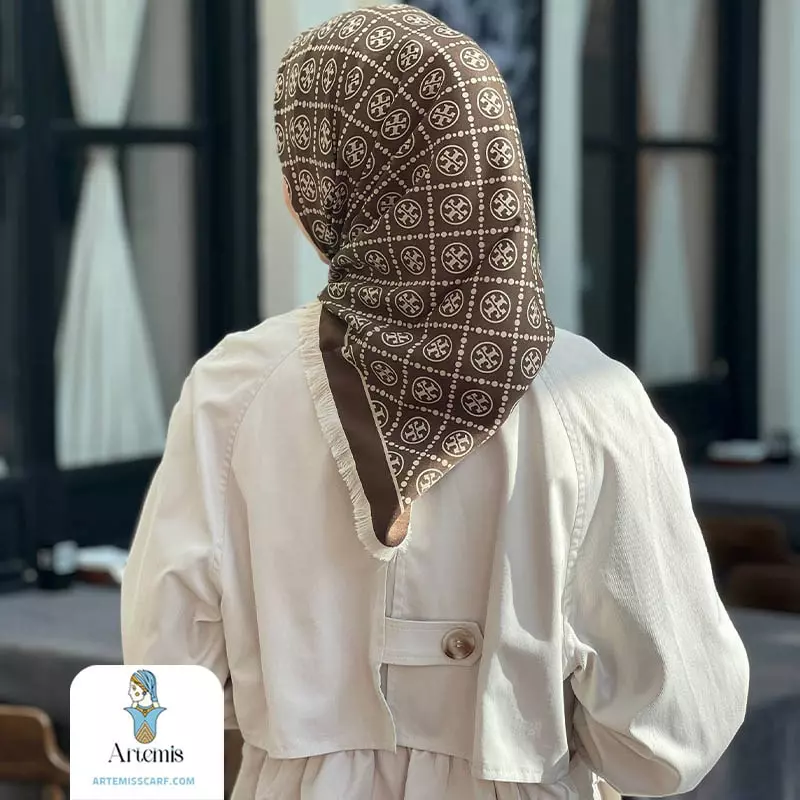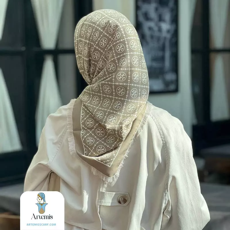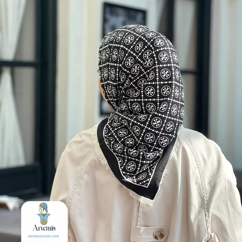 وجود لوگو های منظم و قاب‌بندی‌های ظریف، روسری را به گزینه‌ای مناسب برای خانم‌هایی تبدیل کرده که به استایل آراسته، مرتب و خوش‌فرم اهمیت می‌دهند.