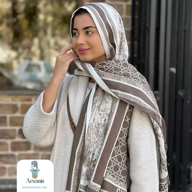طراحی این شال با الهام از استایل برند Dior انجام شده است؛ جزئیات چاپ، نوع خطوط و انتخاب رنگها حس ظرافت و اصالت را القا میکند. لوگو و طرحهای کلاسیک آن در کنار بافت لطیف کشمیر، جلوهای لوکس و منحصربهفرد به استایل شما میبخشند.