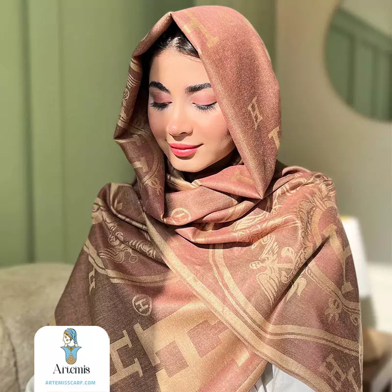 وجه تمایز این مدل، طرح خاص و ظریف هرمس است که با الهام از المانهای کلاسیک این برند طراحی شده. لوگوها و موتیفهای نمادین، در بافت شال بهصورت یکدست و هماهنگ قرار گرفتهاند تا ظاهر آن جلوهای شیک و چشمنواز پیدا کند.